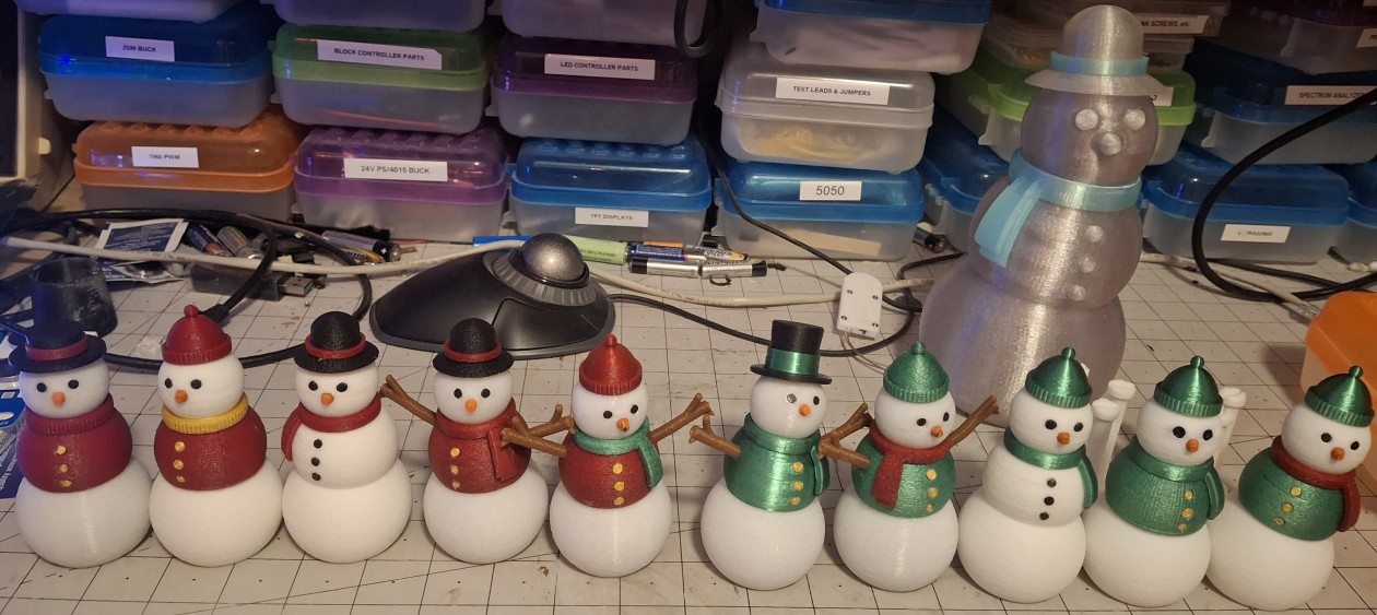 Instead I’ll share the snowmen (and women) I’ve been 3D printing, up until about a week ago anyway. They say after the 15th there’s no guarantee it will arrive before Christmas, but I put my faith in the USPS Ground Advantage plan. Not so funny, funny story there, but I’ll save it for later. Let’s just say I’m a bit disappointed with the Post Office for once.